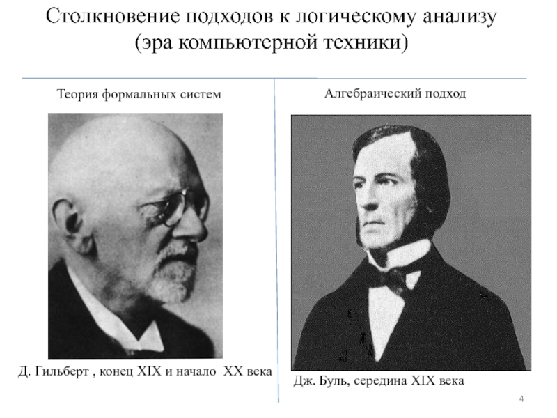 Слайд 4Столкновение подходов к логическому анализу