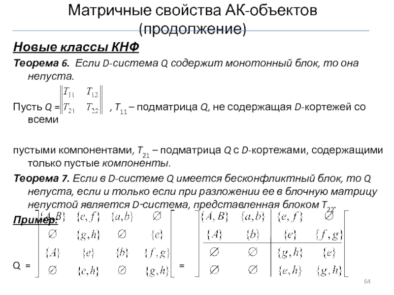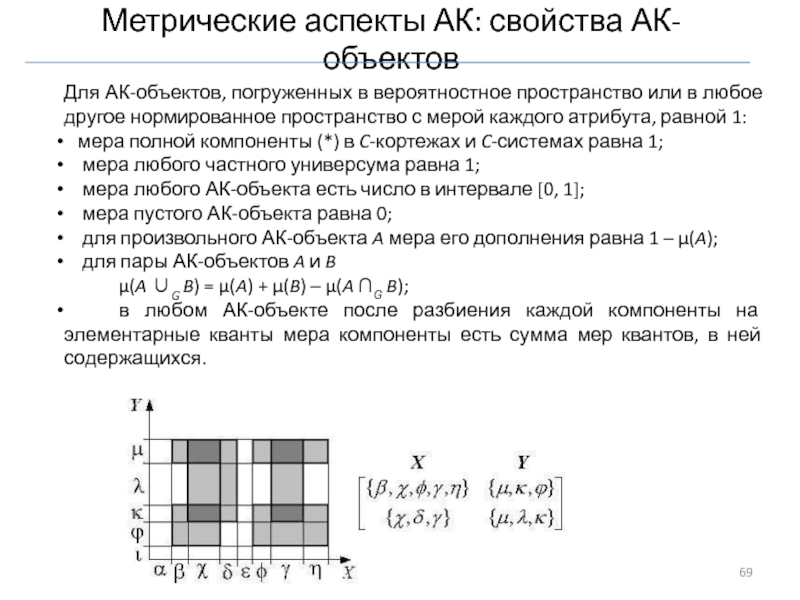 Слайд 69Метрические аспекты АК: свойства АК-объектов