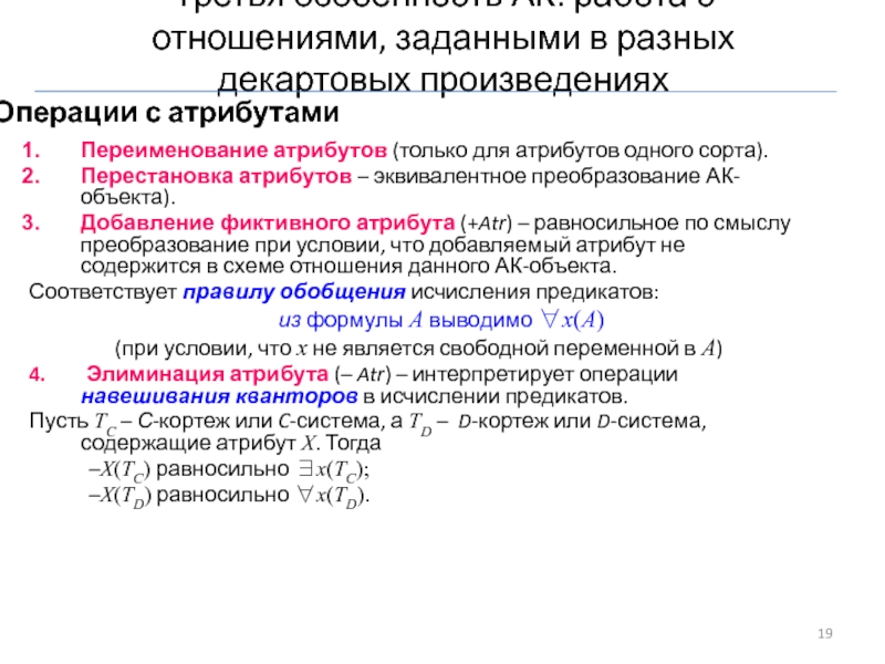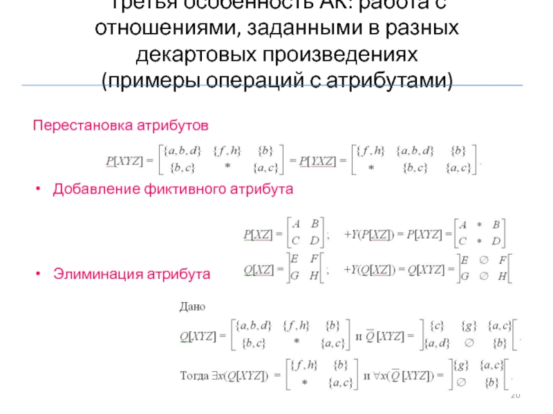 элиминация атрибута (−Atr).