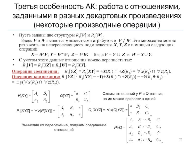 Производные операции: соединение (⊕) и композиция (∙) отношений