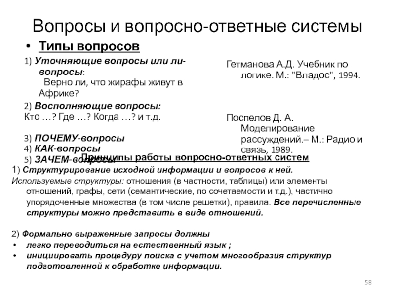 Предикаты, семантические сети и др. представления отношений