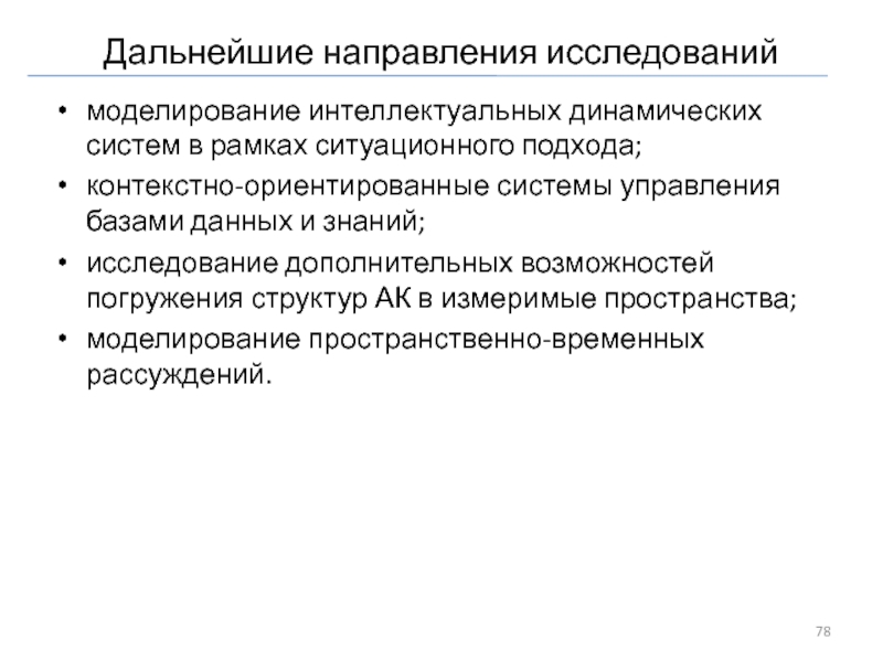 Слайд 78Дальнейшие направления исследований