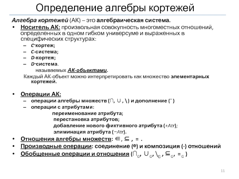Слайд 11Определение алгебры кортежей