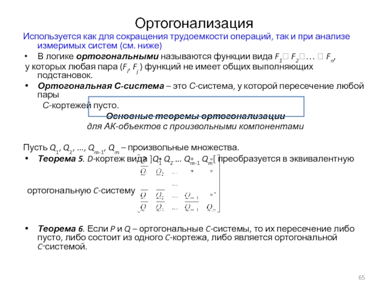 Но если элементы имеют более двух состояний, то в этом случае ортогонализация средствами ЛВМ проблематична. В АК это намного проще.