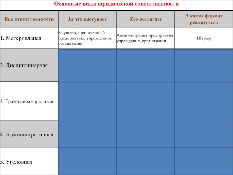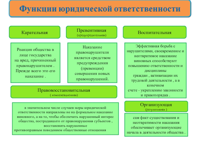 Всегда имеет неблагоприятные последствия для правонарушителя: имущественные (материальные) моральные , физические , политические