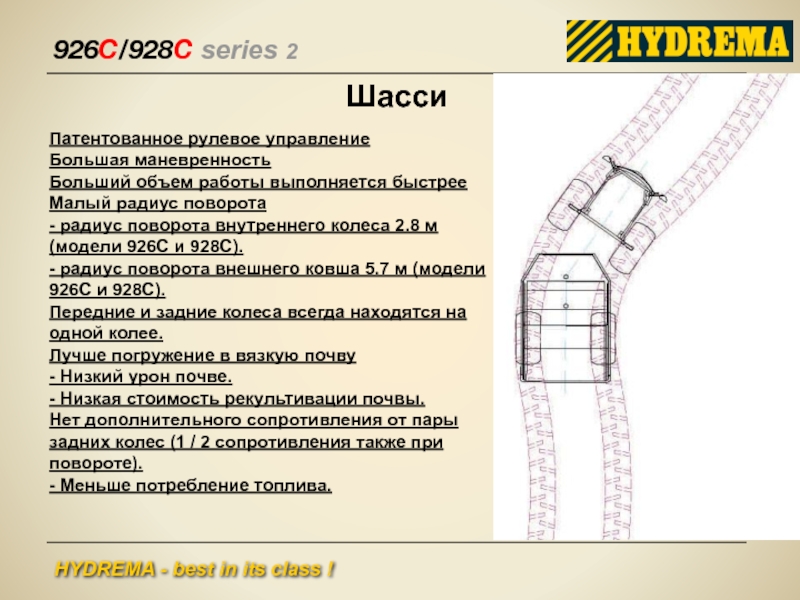 - радиус поворота внешнего ковша 5.7 м (модели 926С и 928С).