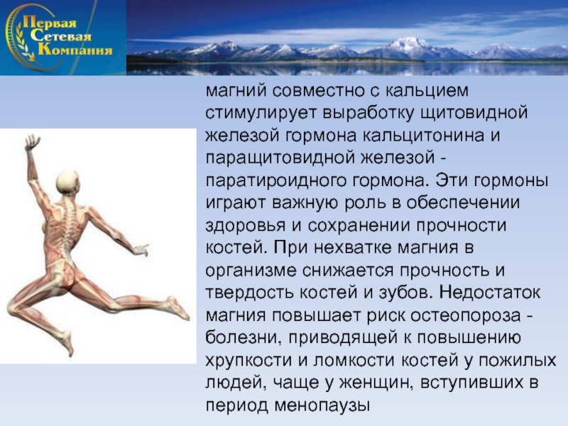 Слайд 11магний совместно с кальцием стимулирует выработку щитовидной железой гормона кальцитонина и