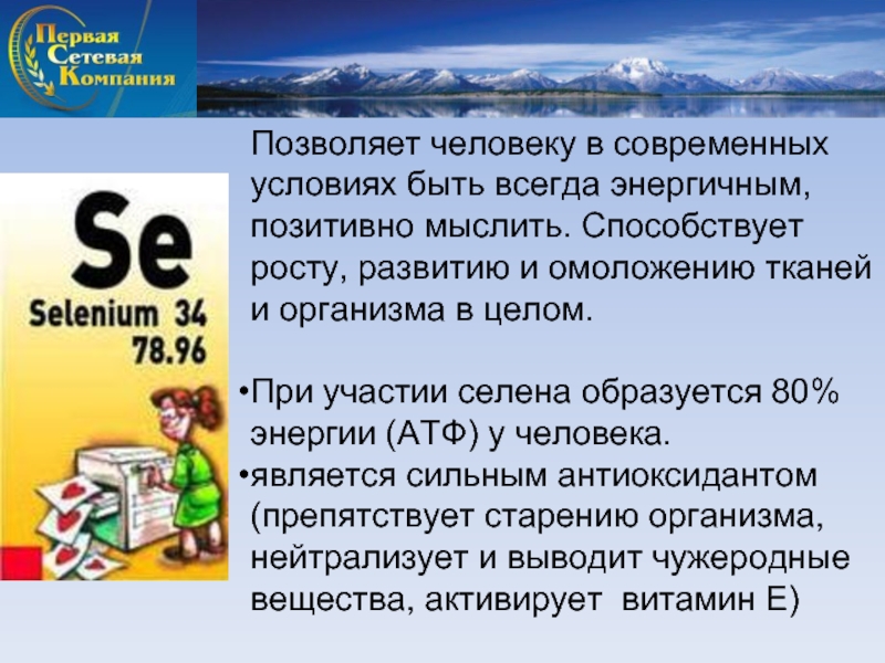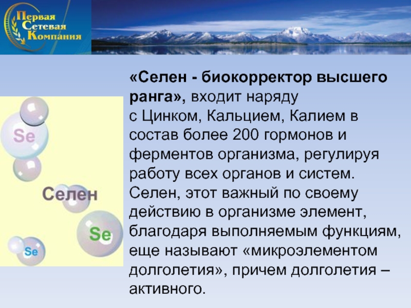 Слайд 18«Селен - биокорректор высшего ранга», входит наряду с Цинком, Кальцием, Калием в состав более 200