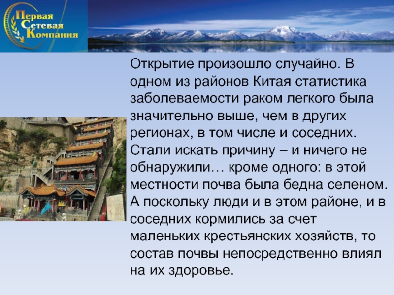 Слайд 19Открытие произошло случайно. В одном из районов Китая статистика заболеваемости раком