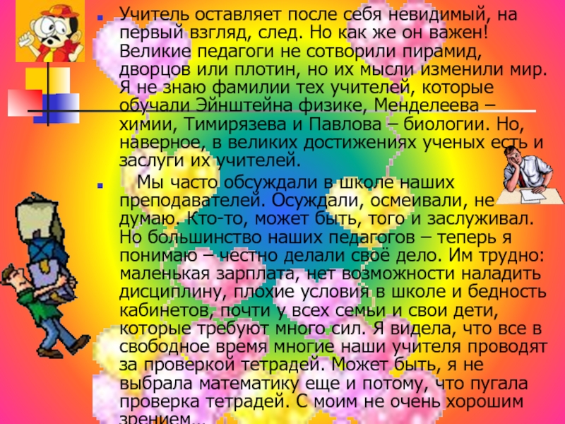 Слайд 5Учитель оставляет после себя невидимый, на первый взгляд, след. Но как