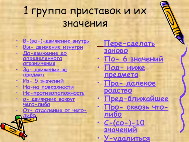 Слайд 101 группа приставок и их значения