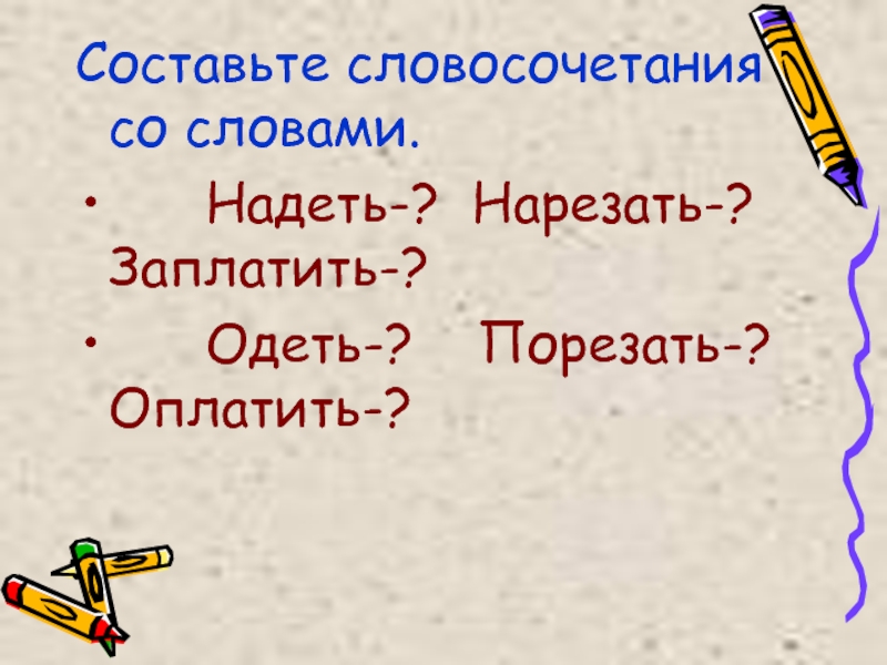Одеть-? Порезать-? Оплатить-?