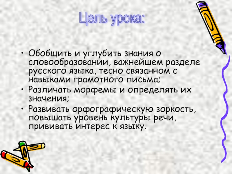 Обобщить и углубить знания о словообразовании, важнейшем разделе русского языка, тесно