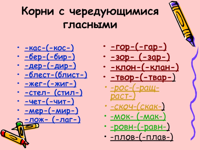 Слайд 17Корни с чередующимися гласными