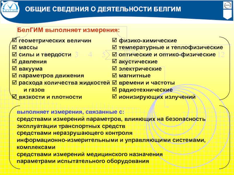 Оснащённость лабораторий высокоточной аппаратурой, современная эталонная база, высококвалифицированный персонал позволяют БелГИМ обеспечить: