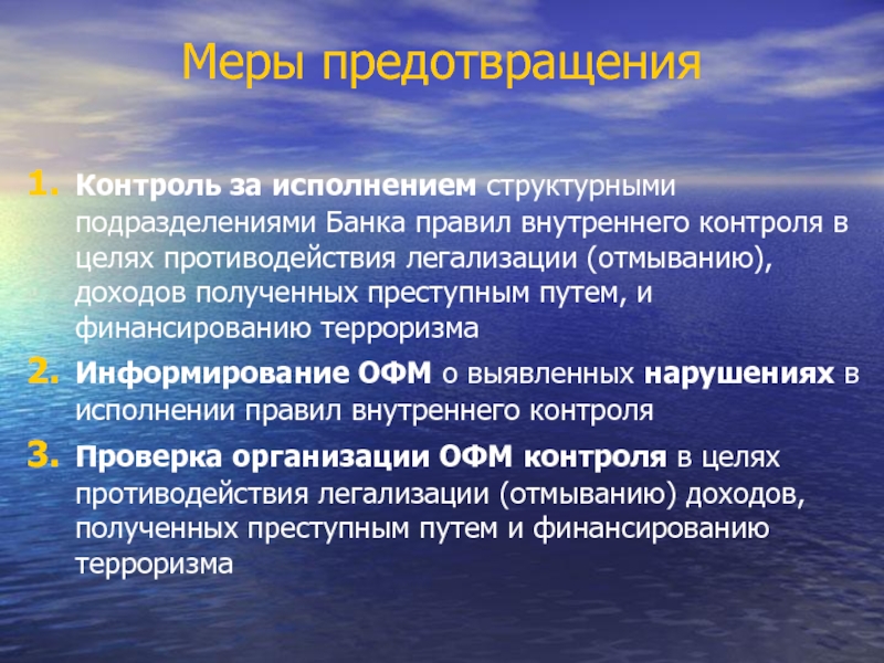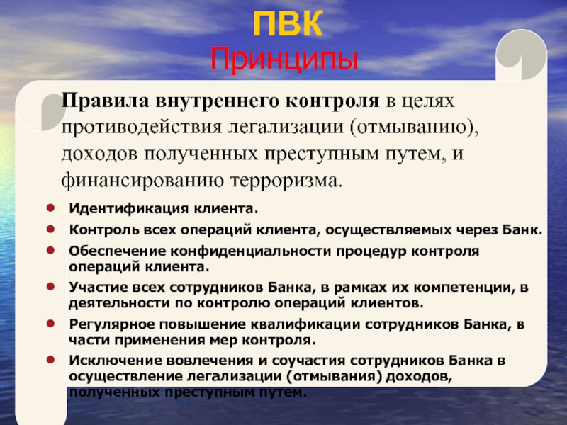 Участие всех сотрудников Банка, в рамках их компетенции, в деятельности по контролю операций клиентов.