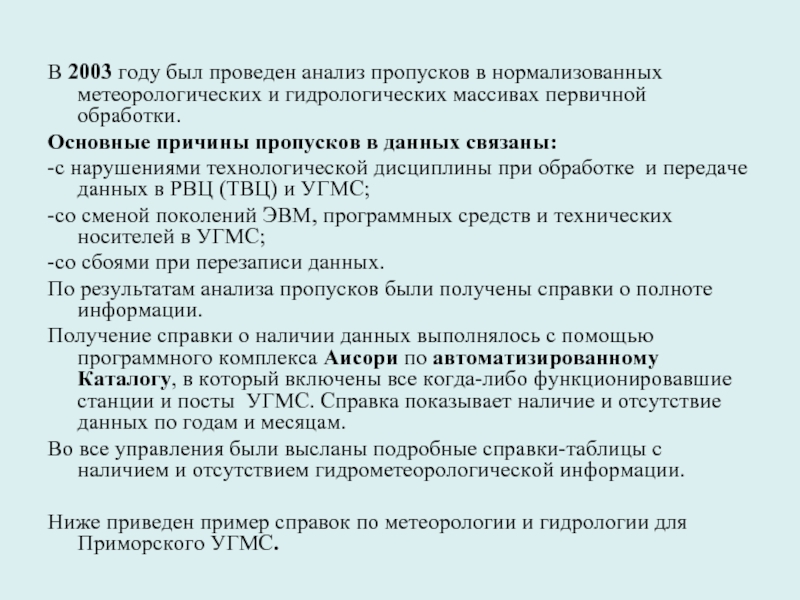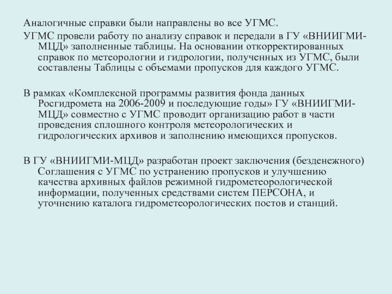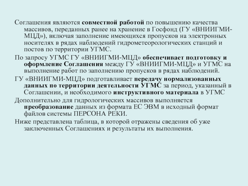 Главной задачей Госфонда, является сбор, учет и обеспечение долговременного хранения данных. Учитывая специфику данных, которая состоит в том, что ресурсы Фонда регулярно используются для решения различного рода задач, связанных с прогнозированием погодных условий, выполнением исследований по оценке изменений Климата и состояния природной среды, Госфонд должен обеспечивать качество и полноту используемой информации.