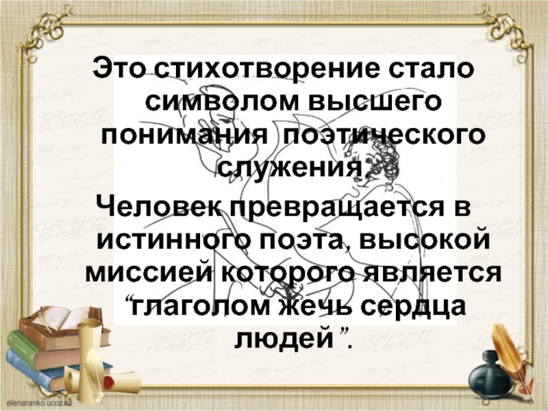 Слайд 20Это стихотворение стало символом высшего понимания поэтического служения.