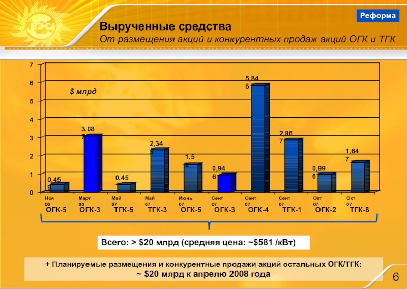 От размещения акций и конкурентных продаж акций ОГК и ТГК