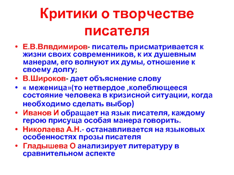 Слайд 5Критики о творчестве писателя