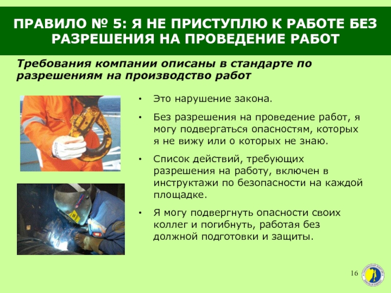 Требования компании описаны в стандарте по разрешениям на производство работ