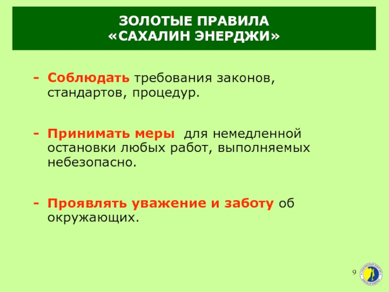 Законодательство и наши стандарты содержат множество правил, которые мы должны знать и выполнять.