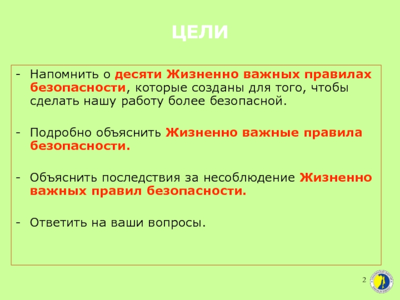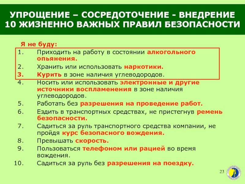 За несоблюдение жизненно важных правил безопасности будут применяться определенные меры.