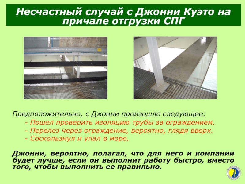 Несчастный случай с Джонни Куэто на причале отгрузки СПГ