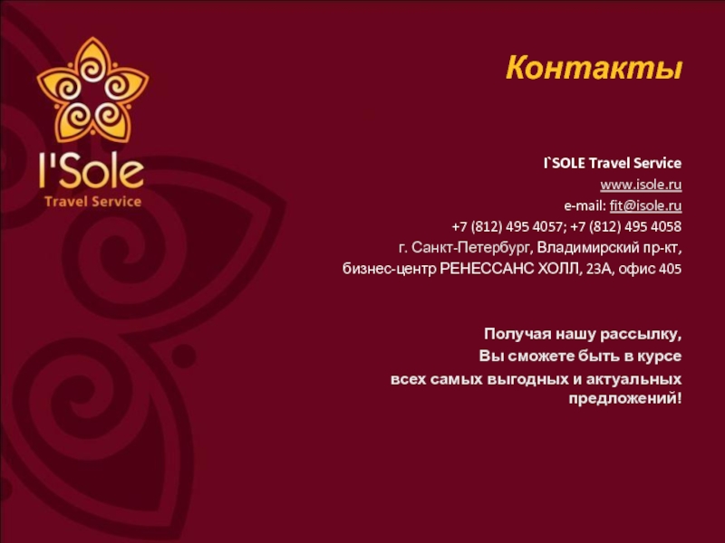 Компания I`SOLE Travel Service является специалистом по организации индивидуальных и