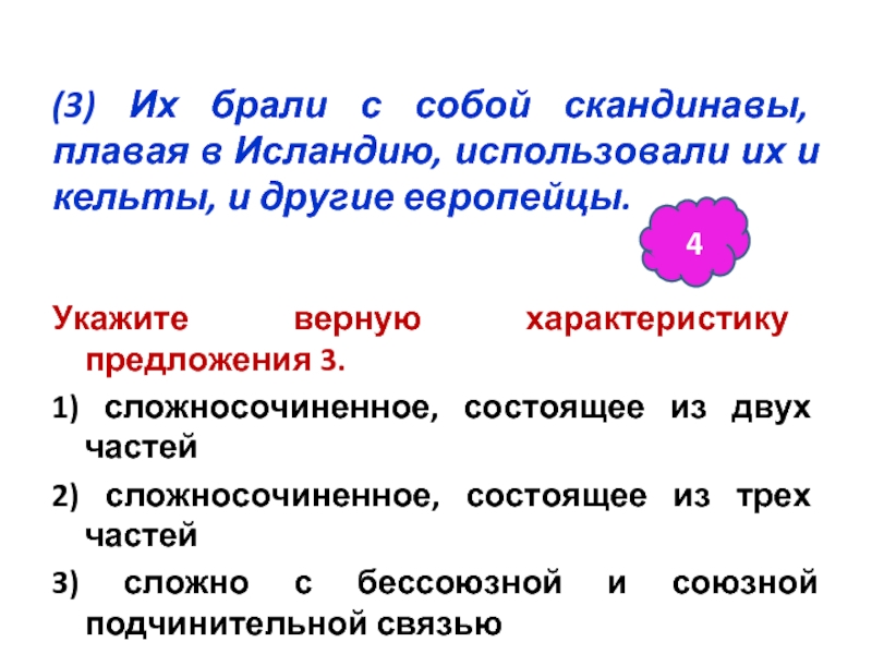 4) сложное с союзной подчинительной и бессоюзной связью между частями