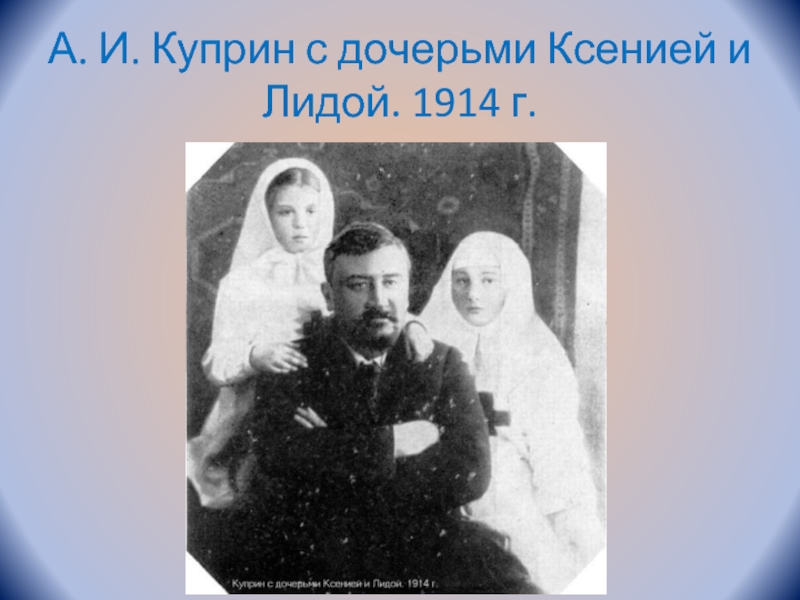 Слайд 9А. И. Куприн с дочерьми Ксенией и Лидой. 1914 г.