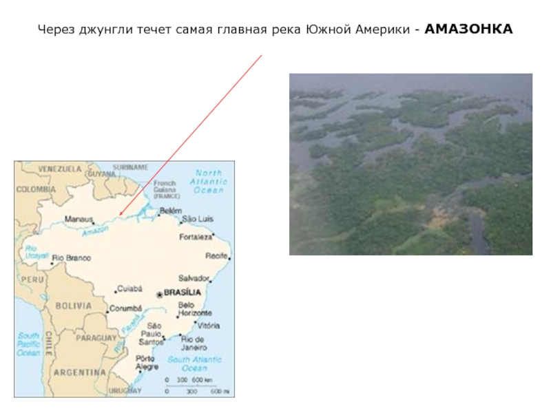 Но на самом деле это вовсе не тень тучки, а то место где Амазонка встречается с рекой Рио-Негро. Вода в Рио Негро такая прозрачная и чистая, что кажется черной. А вот вода Амазонки мутная и желтая из-за того, что ее течение переносит огромное количество ила. Амазонку иногда даже называют «белой» рекой.