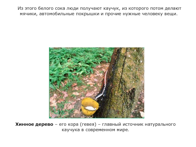 Хинное дерево – его кора (гевея) – главный источник натурального каучука в современном мире.