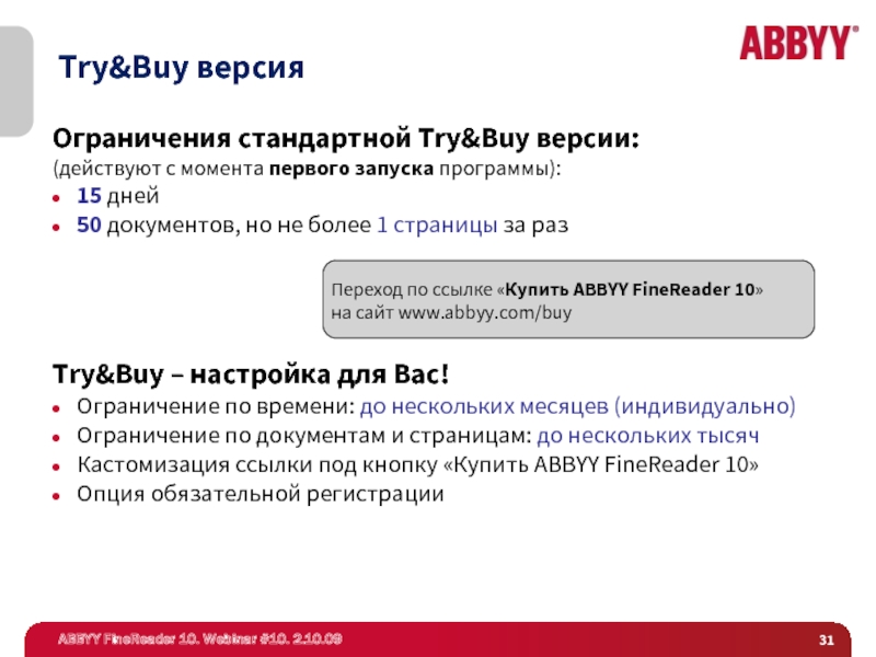 Кастомизация ссылки под кнопку «Купить ABBYY FineReader 10»