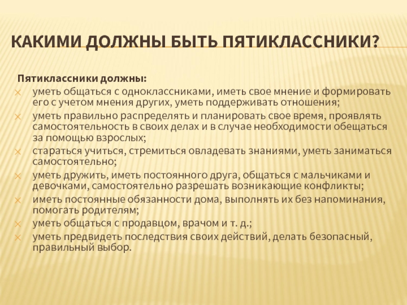 Слайд 2КАКИМИ ДОЛЖНЫ БЫТЬ ПЯТИКЛАССНИКИ?