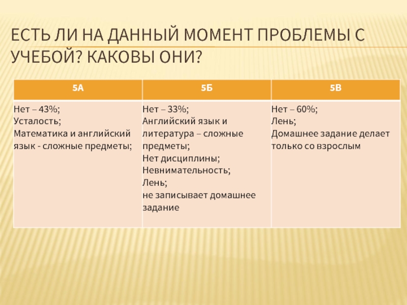 Слайд 30ЕСТЬ ЛИ НА ДАННЫЙ МОМЕНТ ПРОБЛЕМЫ С УЧЕБОЙ? КАКОВЫ ОНИ?