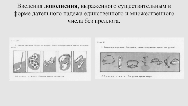 Слайд 10Введения дополнения, выраженного существительным в форме родительного падежа единственного и множественного