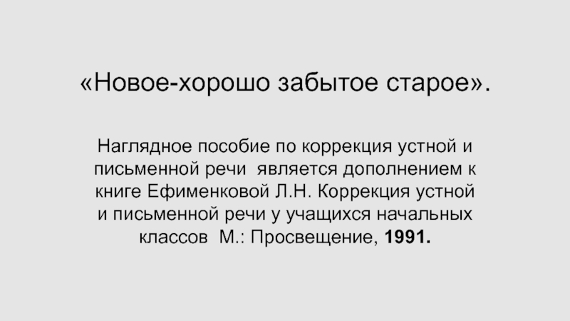 дополнением к книге Ефименковой Л.Н. Коррекция устной и письменной речи у учащихся начальных классов М.: Просвещение, 1991.