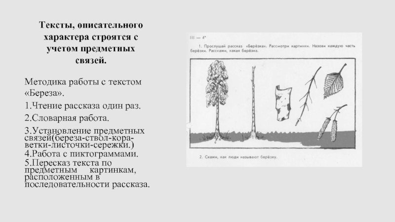 Слайд 19Тексты, описательного характера строятся с учетом предметных связей.