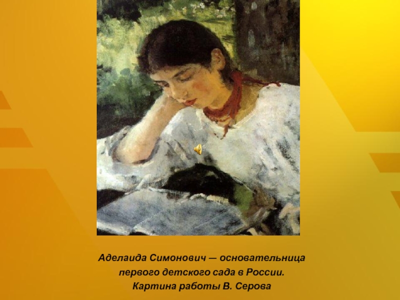Аделаида Симонович основательница первого детского сада в России. Картина работы В. Серова. презентация