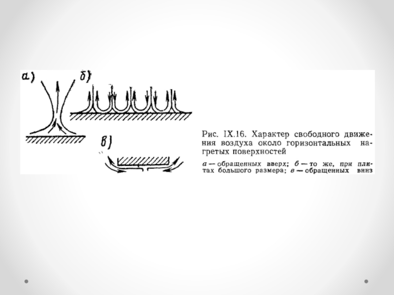 Слайд 20Движение воздуха около горизонтальных нагретых поверхностей отличается значительной сложностью и зависит