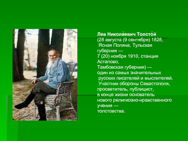 Слайд 13Лев Никола́евич Толсто́й