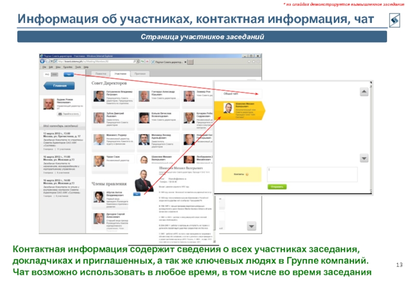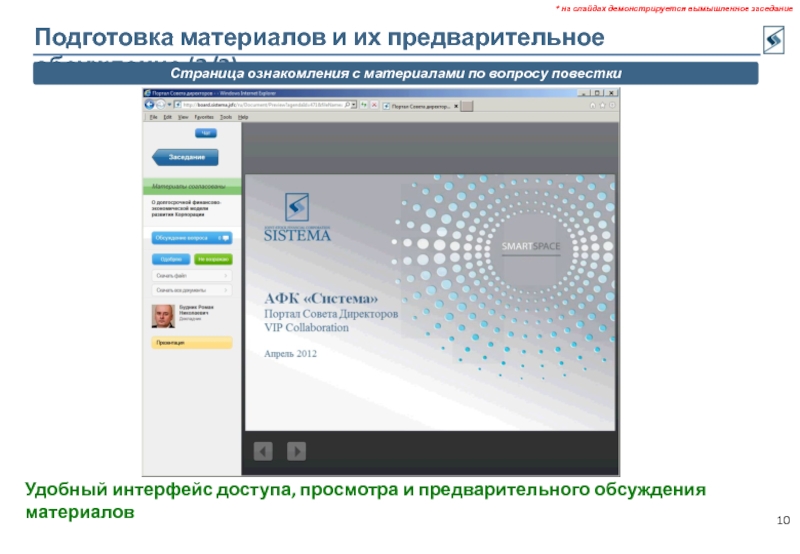 Страница заседания (на слайдах демонстрируется вымышленное заседание)