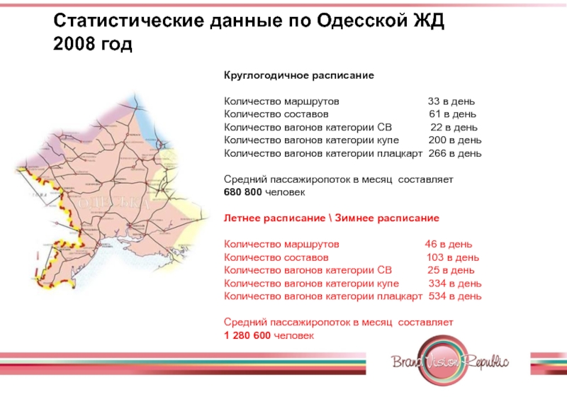 конвейера юго-запада Украины. На данную ж\д приходится почти 20% грузооборота и больше 16% пассажирооборота железных дорог страны. Дорога пролегает по территории 6 областей: Одесской, Николаевской, Херсонской, Черкасской, Кировоградской и Винницкой.