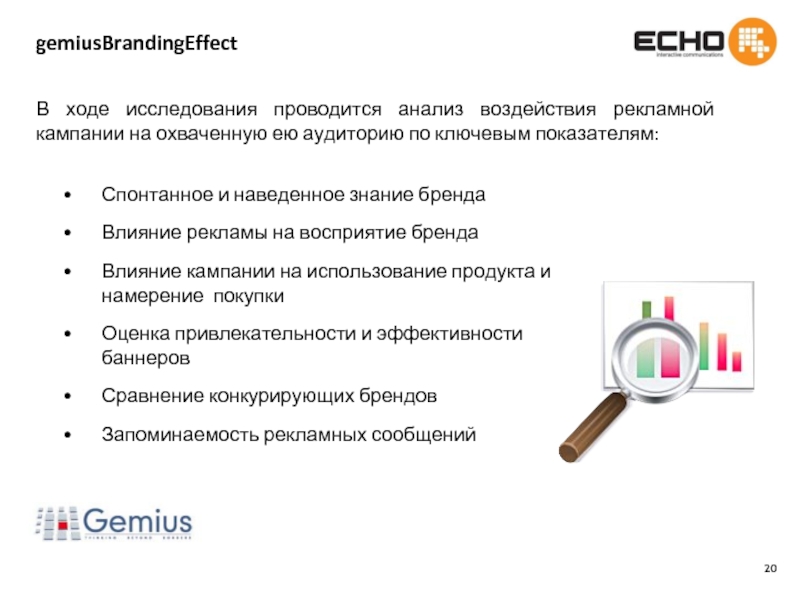 Измерение брендингового воздействия онлайновой рекламной кампании на знание бренда, отношение к бренду, восприятия рекламы бренда в Интернет и намерения совершать покупку среди интернет пользователей.