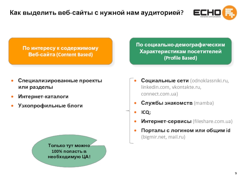 Слайд 9Как выделить веб-сайты с нужной нам аудиторией?