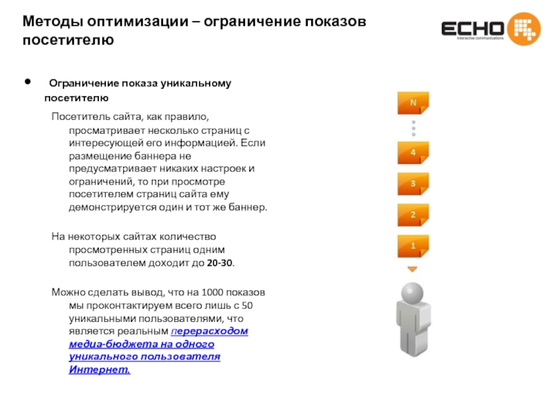 Слайд 13Методы оптимизации – ограничение показов посетителю