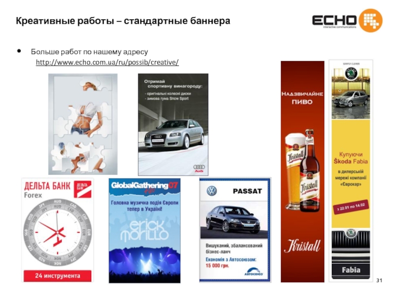 Слайд 32Ещё креативные работы – нестандартные баннера