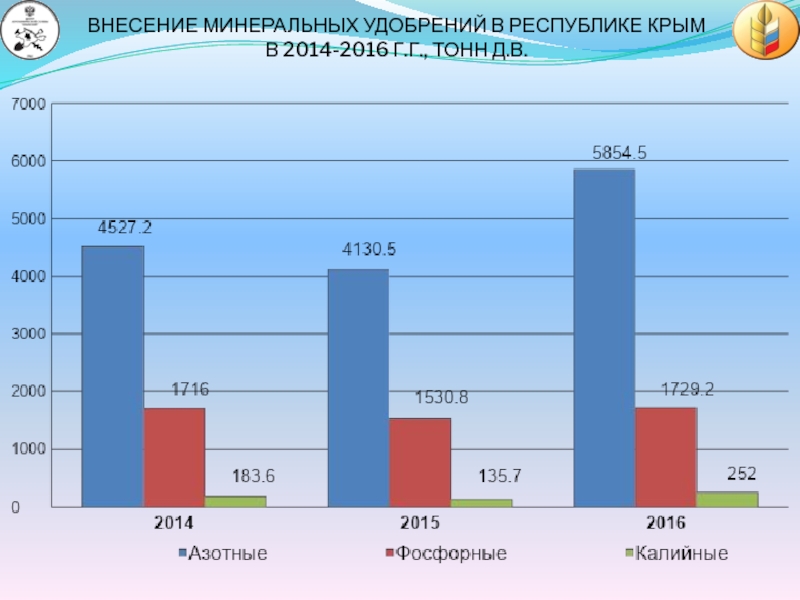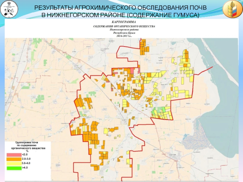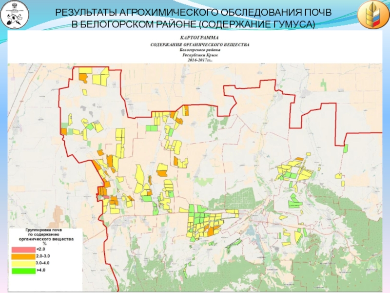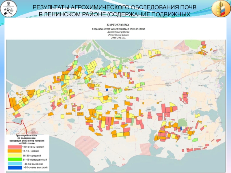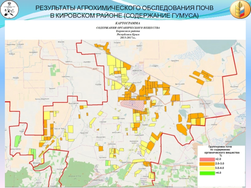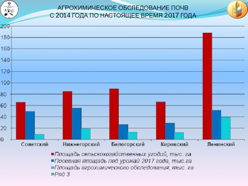ОБЩАЯ ПЛОЩАДЬ АГРОХИМИЧЕСКОГО ОБСЛЕДОВАНИЯ ПОЧВ С 2015 ГОДА ПО НАСТОЯЩЕЕ ВРЕМЯ 2017 ГОДА СОСТАВИЛА 415,3 ТЫС.ГА (27% ОТ ОБЩЕЙ ПЛОЩАДИ СЕЛЬХОЗУГОДИЙ РЕСПУБЛИКИ КРЫМ)