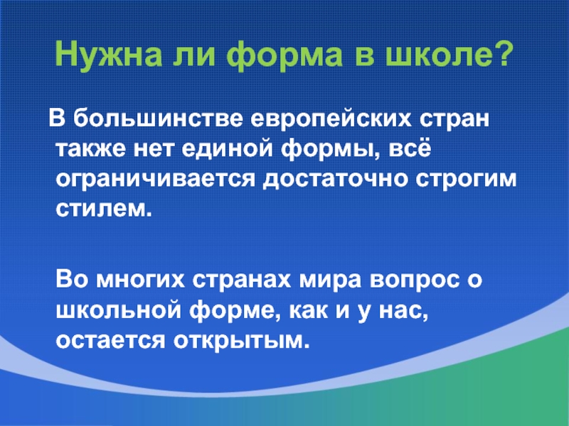 Слайд 26Нужна ли школьная форма сегодня? Какой она должна быть?